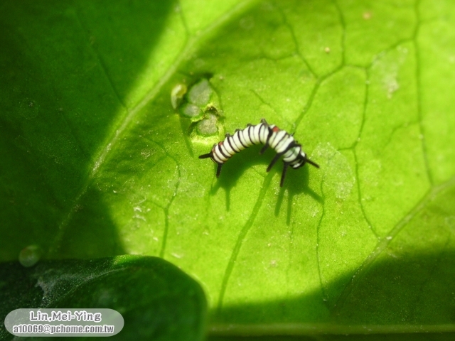 我天生知道葉子有網子(葉脈)的地方很毒不能吃。因為我還小,怕消化不了會毒死自己,所以我只啃食葉子背面的地方。