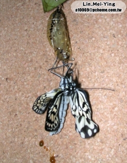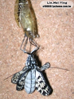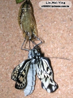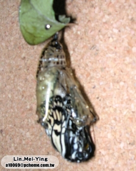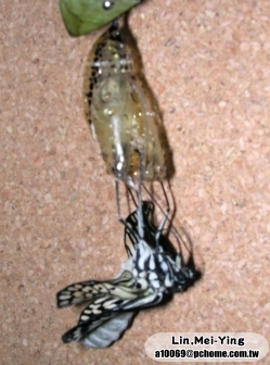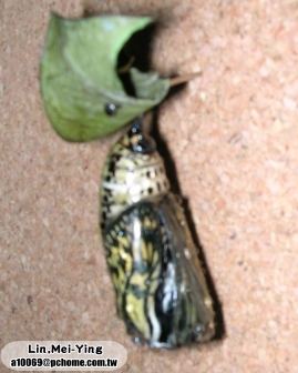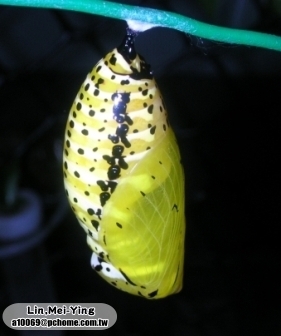 我的金色外衣變成透明的薄紗了,你看見我的外型了嗎?因為我即將破蛹而出,透明的薄紗會讓我輕易的出來與大家見面。
